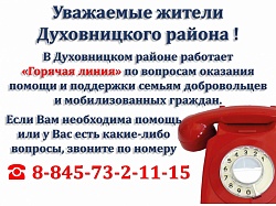 Телефон «горячей линии» ГУЗ СО «Духовницкая РБ» по вопросам коронавирусной инфекции: