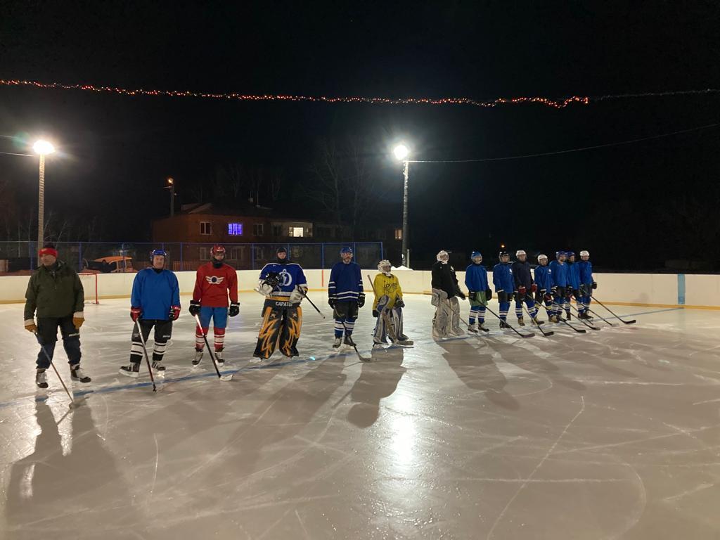 Сегодня на ледовом катке хоккейной коробки в р.п. Духовницкое, в вечернее время состоялась товарищеская встреча по хоккею с шайбой.