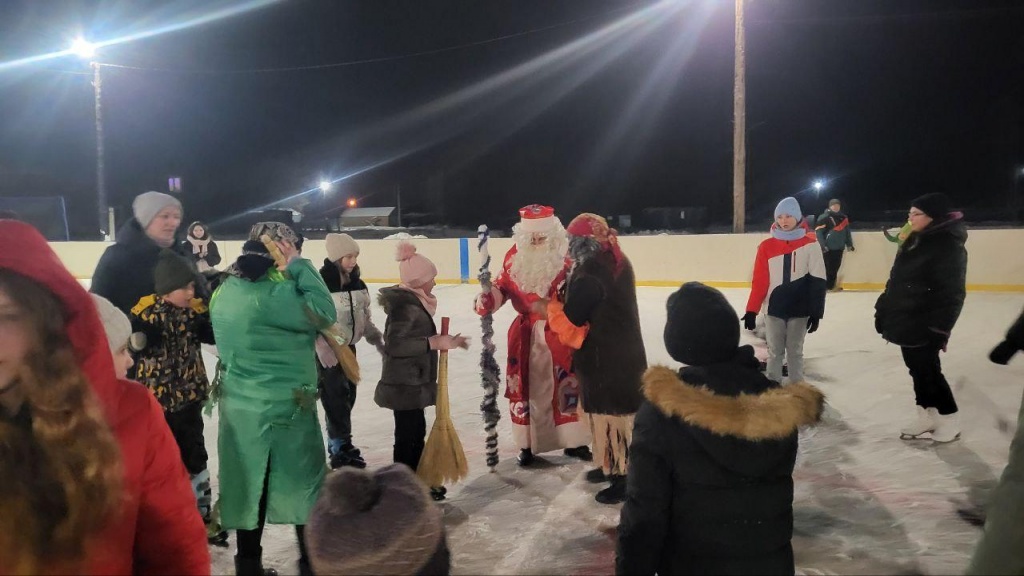 Для детей были организованы весёлые игры под руководством Бабы-Яги и Кикиморы. Ребята читали стихи Деду Морозу, а взамен получали сладости.
