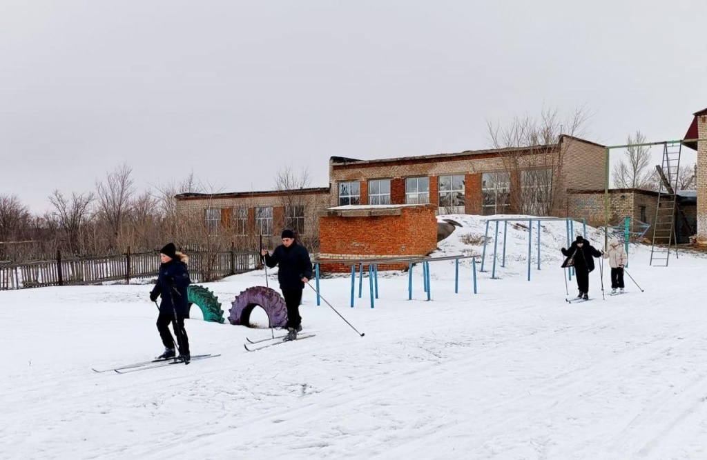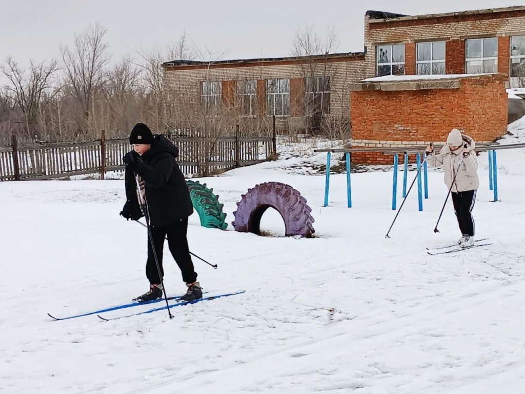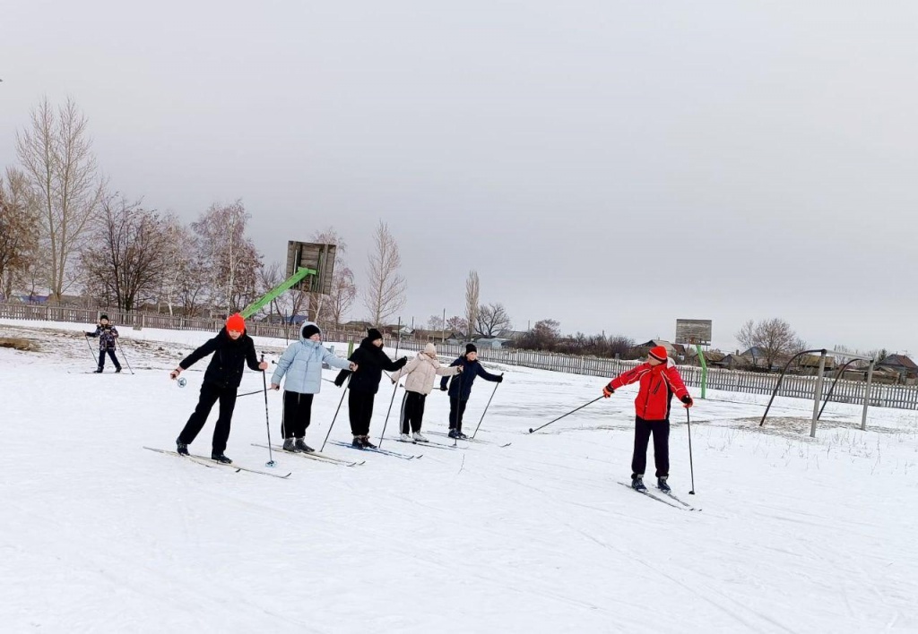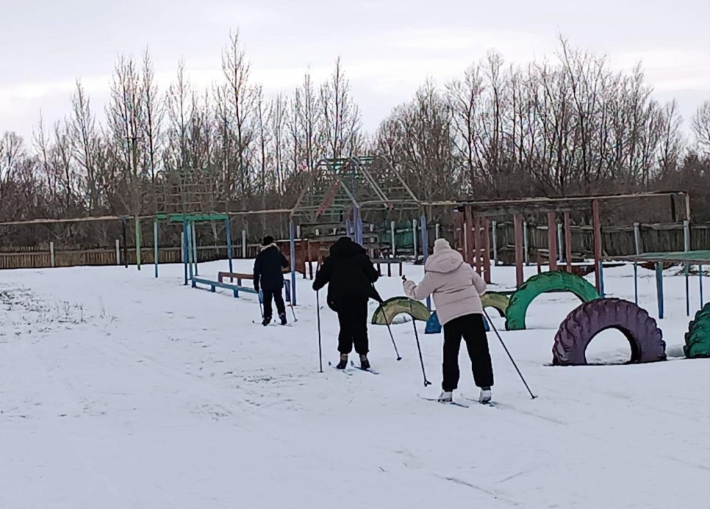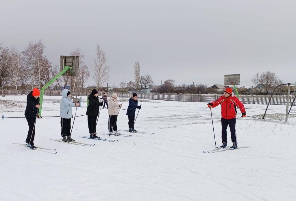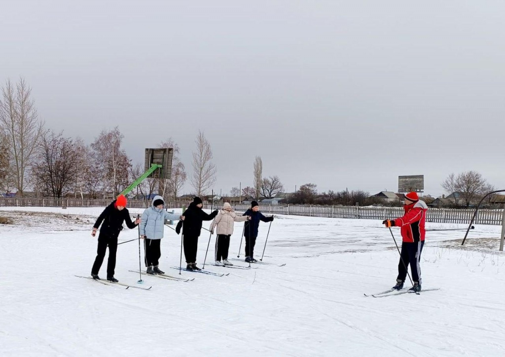 В рамках проекта "Дворовый тренер"в с.Теликовка ребята осваивают азы техники лыжных ходов