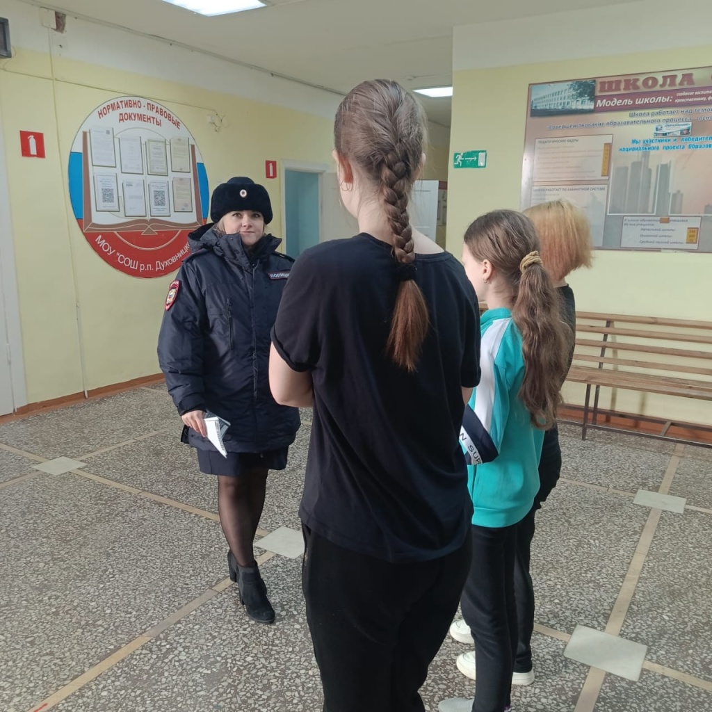 Инспектором ПДН ОП № 1 в составе МУ МВД России «Балаковское» Саратовской области Бахмуцковой Евгенией Александровной проведены разъяснительные профилактические беседы с несовершеннолетними МОУ «СОШ им. Г.И. Марчука р.п. Духовницкое» по вышеуказанной тематике с распространением памяток: «Осторожно! Тонкий лёд опасен!», «Внимание, гололёд!», «Правила поведения на льду», и др.