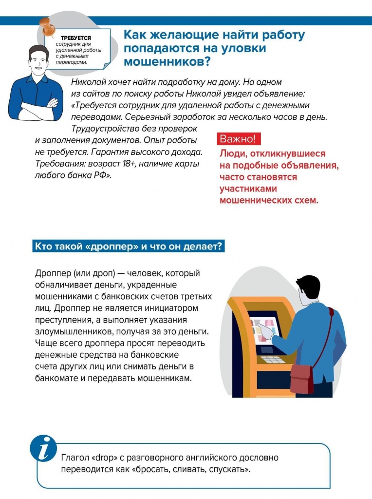 Дроппер - это подставное лицо, которое помогает мошенникам обналичить похищенные деньги