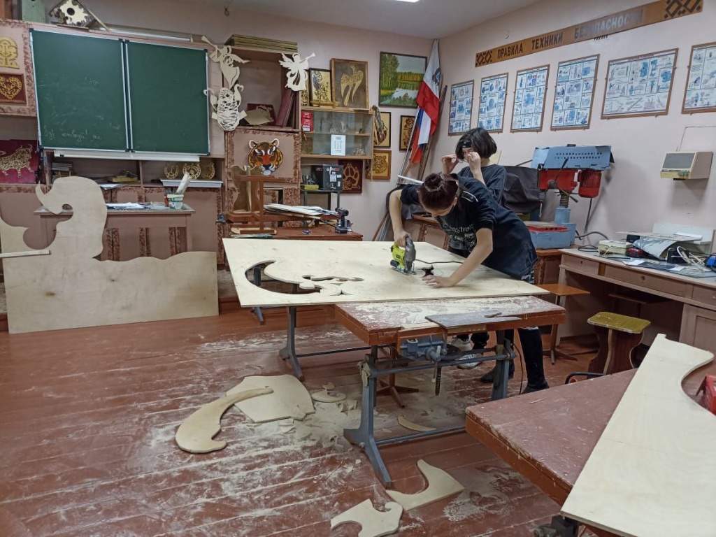 Педагоги Центра "Точка роста" Стародубцев Сергей Владимирович и Пименова Елена Валентиновна вместе с ребятами обсудили проект нового новогоднего оформления фасада здания и внутренних помещений, подготовили эскизы и приступили к изготовлению декора.