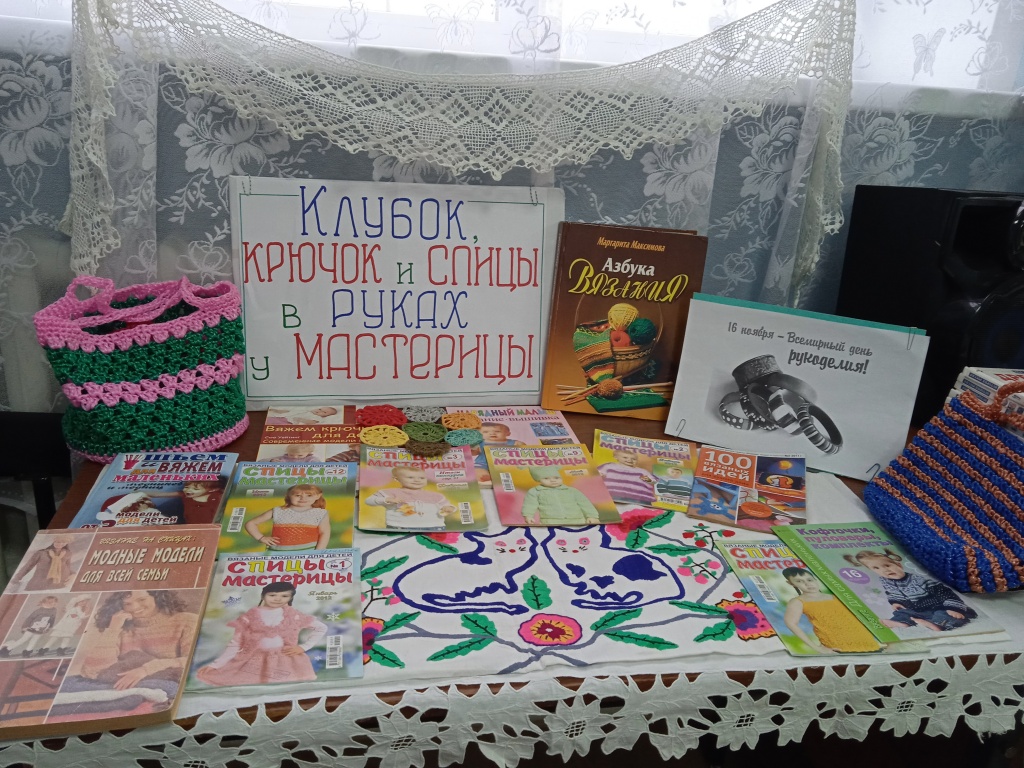 Людей, увлеченных рукоделием, очень много. В Дмитриевской библиотеке для всех любителей вязания оформлена выставка "Клубок, крючок и спицы в руках у мастерицы", где представлены замечательные книги по основам вязания, а также книги для мастериц этого вида рукоделия.
