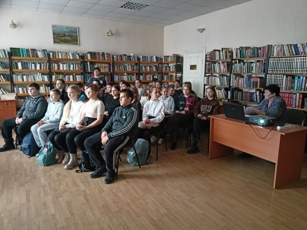 С учащимися 8 классов классные руководители Кузьмичева Т.В., Жданова Е.Г., Верховцева Л.В.- библиотекари Центральной библиотеки Беляева Л.П., Смольянинова Н.И., провели цикл краеведческих мероприятий: