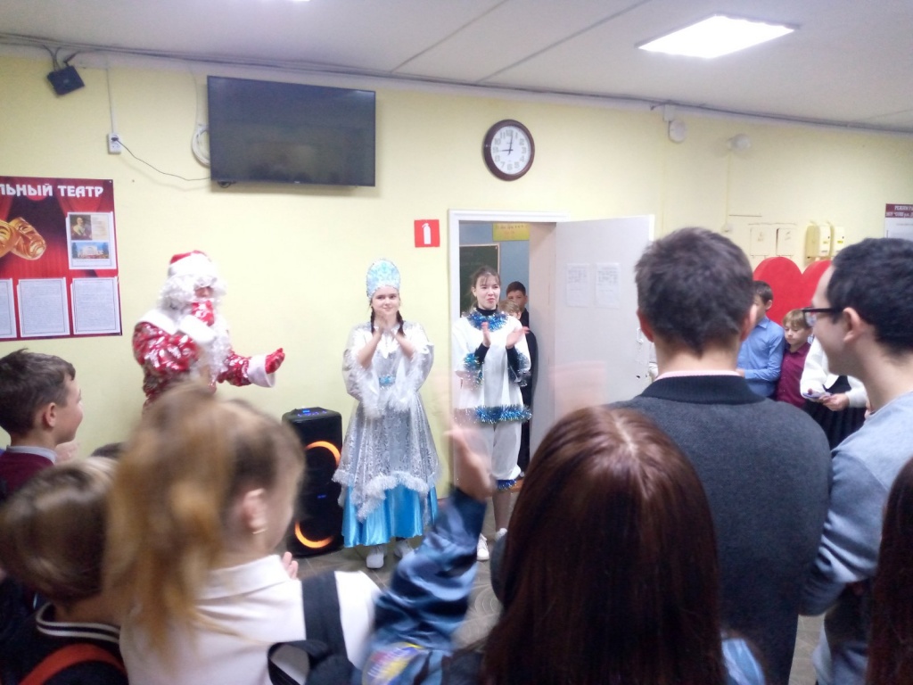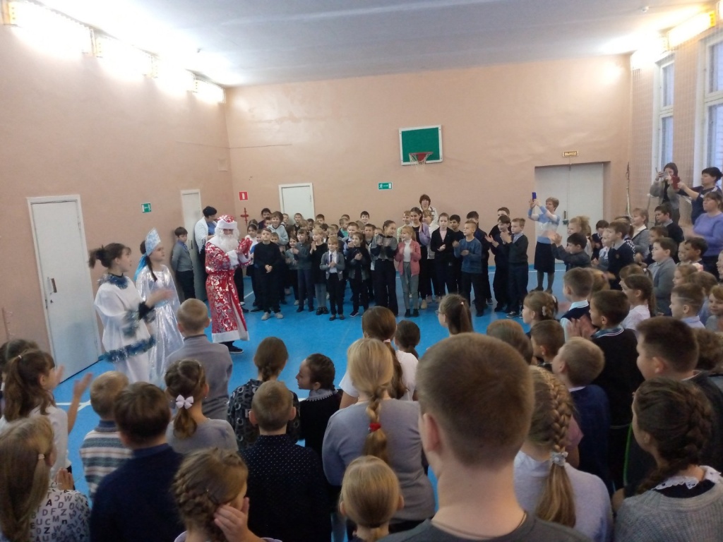 Сегодня в МОУ "СОШ им. Г. И. Марчука р. п. Духовницкое" к ребятам в гости заглянул Дед Мороз, Снегурочка и Снеговик. Ребята хором поздравили Деда Мороза с его праздником. Дед Мороз со своими друзьями сделали флешмоб под новогодние песни. У ребят сразу поднялось предновогоднее настроение.