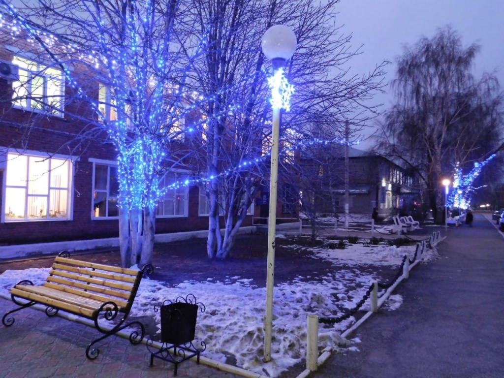 Яркими огнями засветились деревья по улице Ленина, создавая новогоднее настроение.