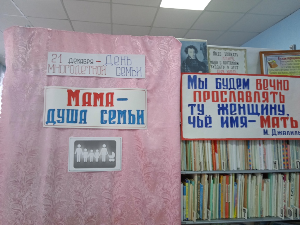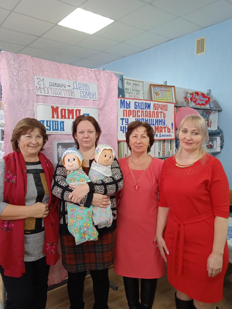 Дмитриевская библиотека совместно с СДК для многодетных мам провели вечер отдыха "Мама - душа семьи". На празднике присутствовала одна из многодетных мам - Трухачева Юлия Сергеевна - мама 5 детей. Все добрые слова и пожелания от гостей праздника, все песни были посвящены Юлии Сергеевне за любовь к детям и материнский подвиг. Мероприятие прошло в доброй, позитивной атмосфере за чаепитием, с веселыми конкурсами и песнями.