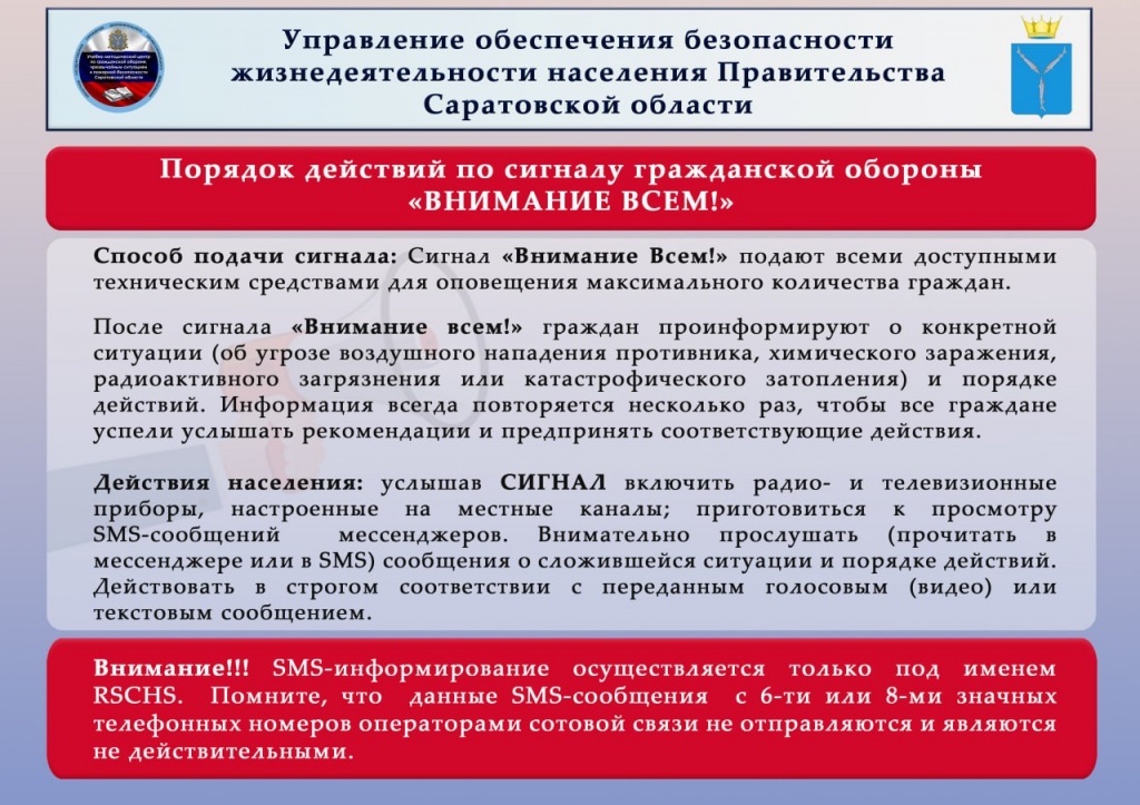 действовать по сигналам «ВОЗДУШНАЯ ТРЕВОГА», «ХИМИЧЕСКАЯ ТРЕВОГА», «РАДИАЦИОННАЯ ОПАСНОСТЬ», «УГРОЗА КАТАСТРОФИЧЕСКОГО ЗАТОПЛЕНИЯ»