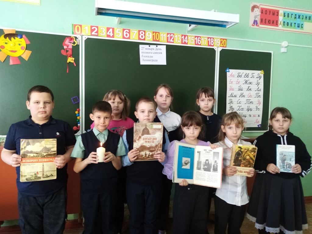 Библиотекарь Новозахаркинского сельского филиала для учащихся 3 класса провела урок мужества "900 блокадных дней". Рассказала о великом подвиге, единстве и мужестве защитников города Ленинграда. О тяжелых испытаниях, выпавших на долю жителей осажденного закрытого города Ленинграда. О голоде и холоде, о детях и женщинах, работавших наравне с мужчинами на заводах. О "Дороге жизни", спасшей Ленинградцев от голодной смерти. Предложила книги для прочтения, рассказывающие о страшных днях испытаний, выпавших на долю Ленинградцев. Книга Н.Ходза "Дорога жизни", М.Сухачев "Дети блокады", В Воскобойников "Девятьсот дней мужества", М.Лободин "За оборону Ленинграда" и другие. Затем минутой молчания дети почтили память погибших во время блокады Ленинграда.
