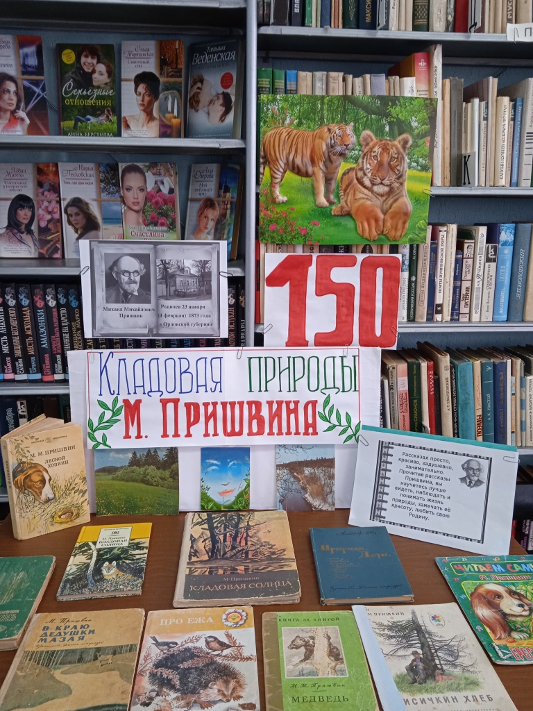 4 февраля исполняется 150 лет со дня рождения русского писателя М.М.Пришвина. В Дмитриевской библиотеке оформлена выставка "Кладовая природы М.Пришвина".