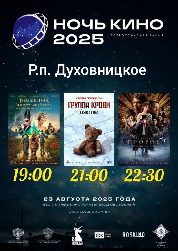 Ждем вас в кинозале «Победа» с 23 на 24 августа!