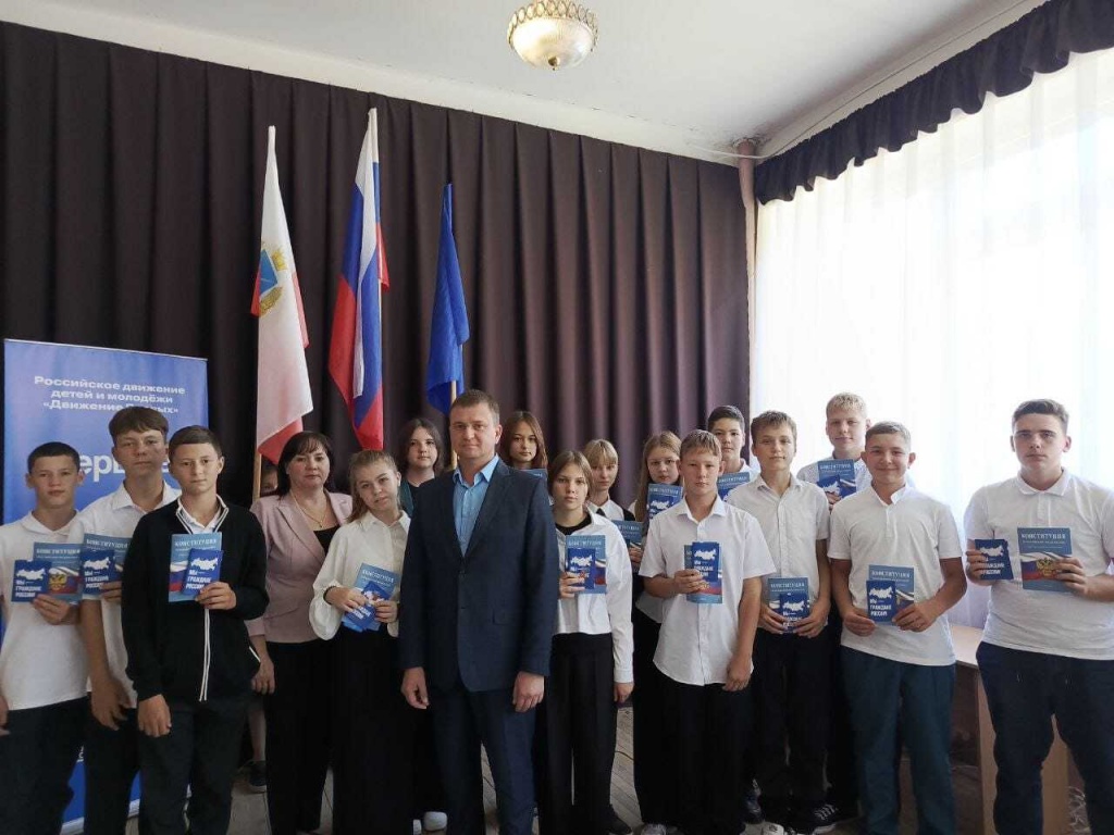 В торжественной обстановке глава Духовницкого района Иван Лялин вручил юным жителям нашего района паспорта гражданина Российской Федерации, Конституцию РФ и значок «Движения Первых».