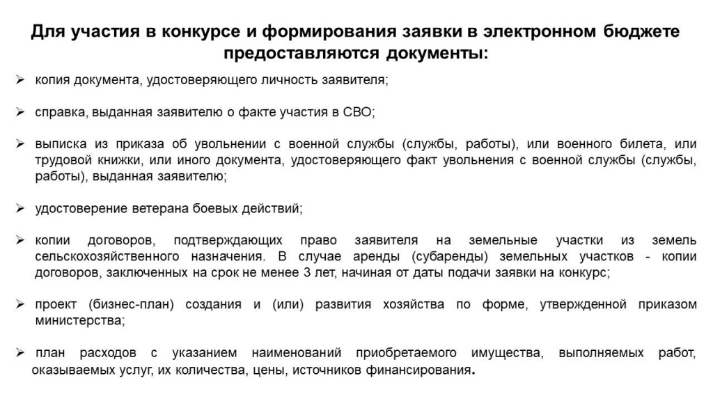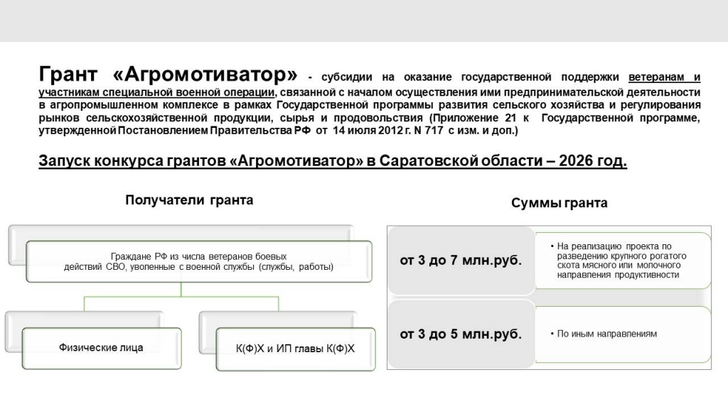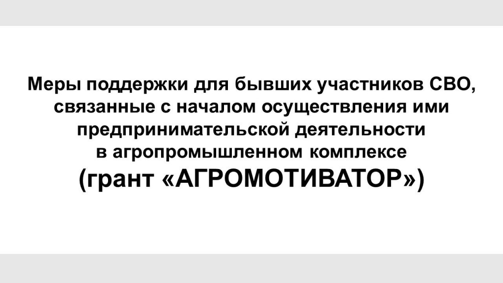 Меры поддержки для бывших участников СВО, связанные с началом осуществления ими предпринимательской деятельности в агропромышленном комплексе (грант «АГРОМОТИВАТОР»)
