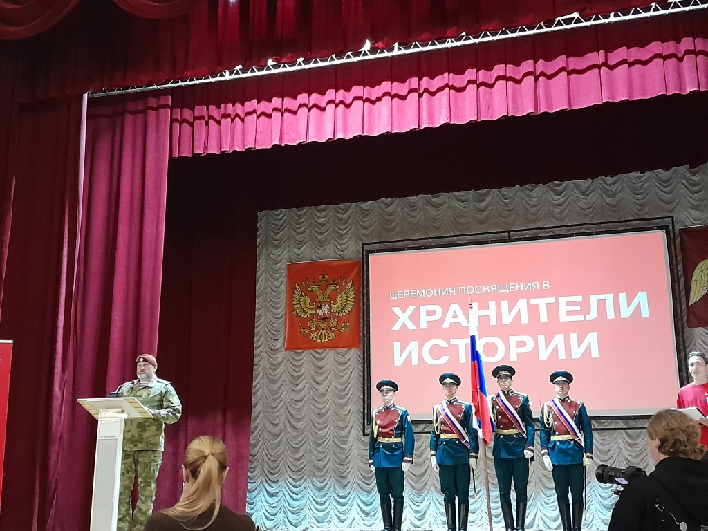 В рамках мероприятия состоялось торжественное посвящение новых членов клуба «Хранителей истории». Ребят приветствовали начальник института Герой России полковник А.М. Белоглазов и председатель Комитета молодёжной политики Саратовской области Беловицкая А.А. Ребята приняли символичную присягу, обещая бережно хранить память о героическом прошлом своих предков и передавать эту историю следующим поколениям.