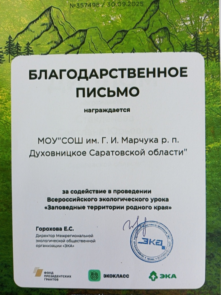 Для учеников 5-х классов МОУ "СОШ им. Г. И. Марчука р.п. Духовницкое" учитель географии и руководитель кружка "Практическая биология" ЦО "Точка роста" р.п. Духовницкое Стекленёва С. Ю. провела экологическую игру "Заповедные территории родного края".