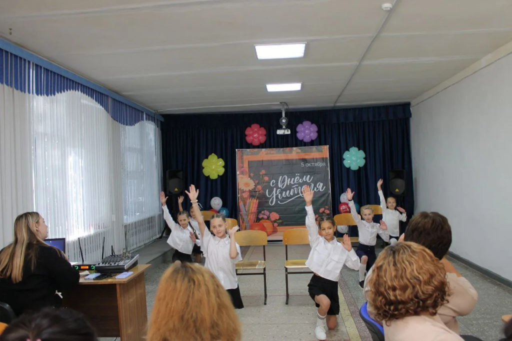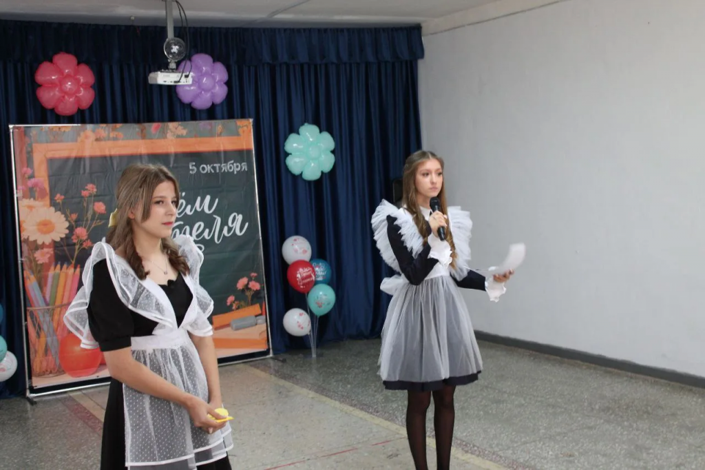 День учителя стал ярким и тёплым праздником, посвящённым уважению и благодарности к педагогам. Ученицы 11 класса провели с учителями урок «Школа наоборот», где учителя могли побаловаться, а ученики сделать им замечания. Атмосфера в школе была наполнена улыбками, добротой и признательностью. Учителя получили много приятных слов и неожиданных сюрпризов от своих воспитанников.