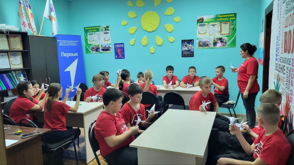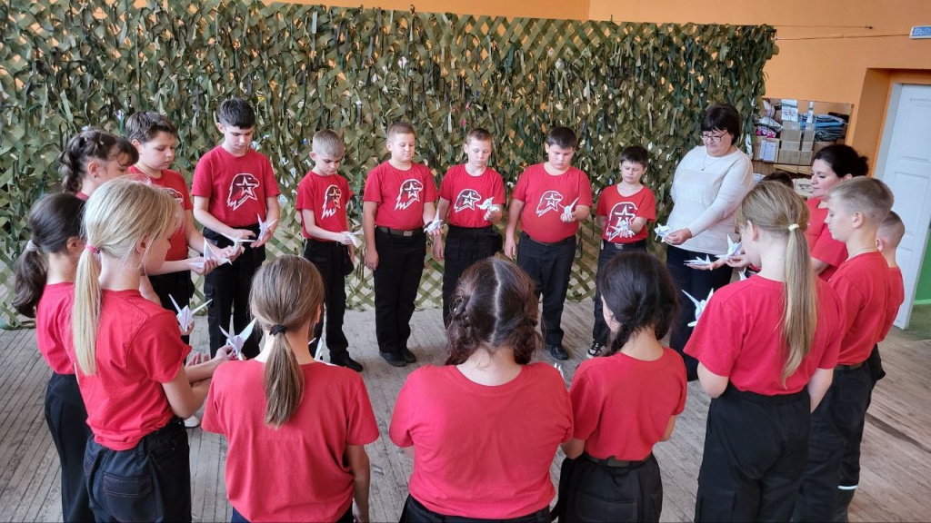 В РДК состоялось мероприятие, посвященное этой дате, на котором присутствовали юнармейцы 5 класса с Немцевой Г.А. Юные волонтеры смастерили белых журавлей, почтили память погибших минутой молчания и прикрепили их на маскировочную сеть.