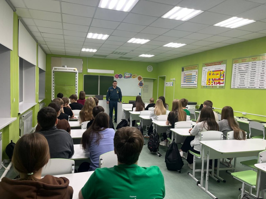 24 ноября начальник 38 пожарно-спасательной части Шкварин Виктор Викторович провел познавательную беседу для обучающихся 8 «А» класса МОУ «СОШ им.Г.И.Марчука р.п.Духовницкое» на занятии «Разговоры о важном» на тему «Профессия-жизнь спасать».