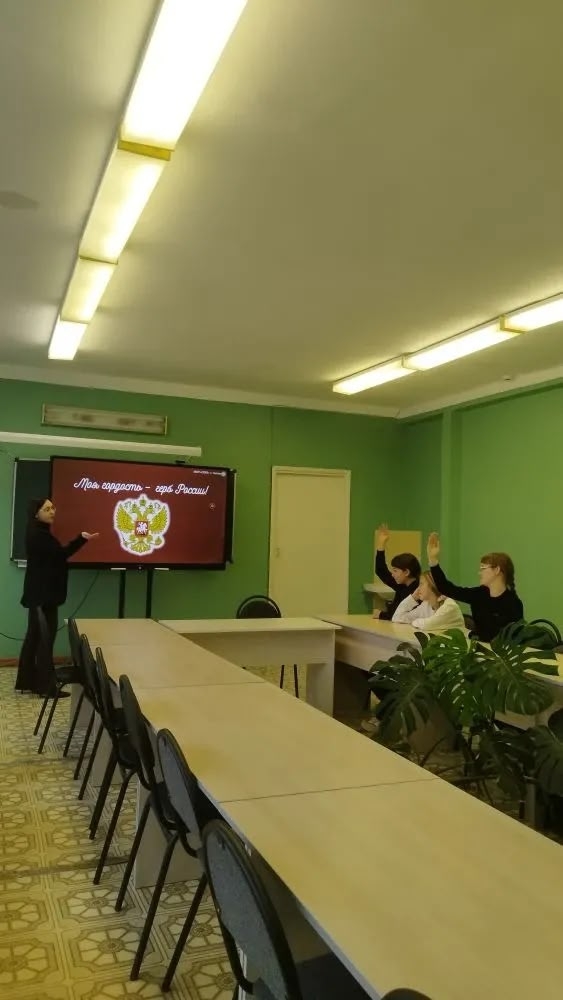 Была показана презентация о происхождении и символическом значении двуглавого орла, представляющего Россию и краткий исторический экскурс в эпоху Ивана III, начавшего использование образа двуглавого орла. Затем была проведена интерактивная викторина "Знатоки Герба России" с вопросами по истории и символике российского герба. А в конце мероприятия, после проведения исследовательской работы в области государственных символов участники сессии создали проект герба своего класса.
