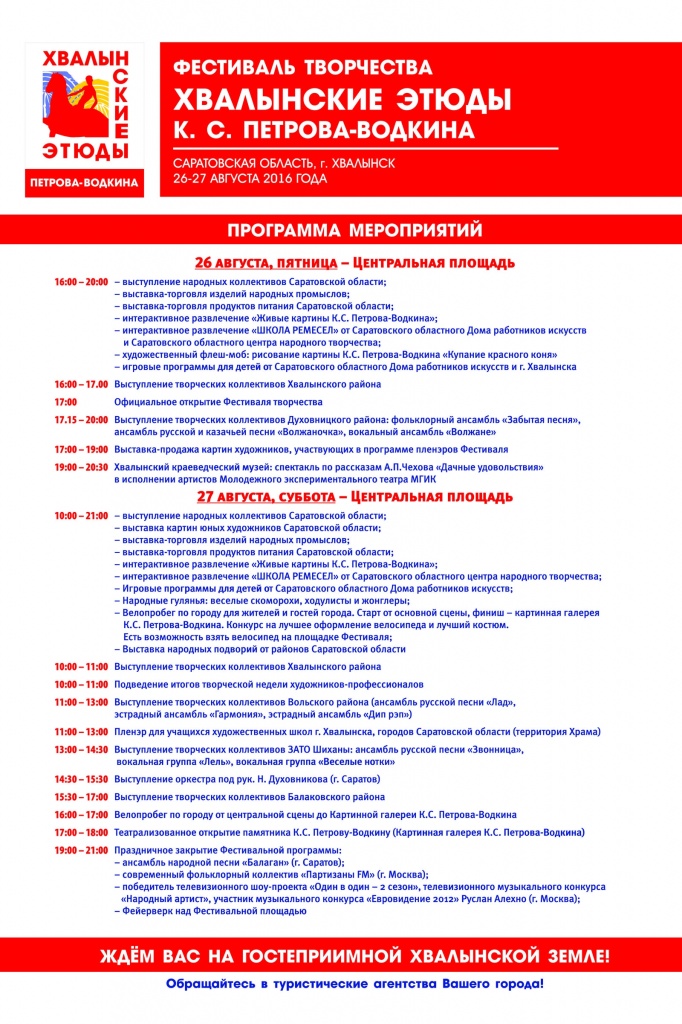 С 26 по 27 августа т.г. в Хвалынске пройдет значимое мероприятие общероссийского масштаба - выставка "Хвалынские этюды", программа мероприятия далее