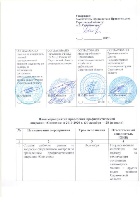 Инспекция Гостехнадзора, на основании Приказа №51 от 03.12.2019г. Государственной инспекции по надзору за техническим состоянием самоходных машин и других видов техники Саратовской области, совместно с ГБДД МВД, ГИМС, комитетом охотничьего хозяйства и рыболовства по Духовницкому району, с 30 декабря 2019г. по 28 февраля 2020г., проводит операцию «Снегоход». Целями операции являются стабилизация дорожно-транспортной обстановки, профилактика и предупреждение ДТП с участием снегоходов.