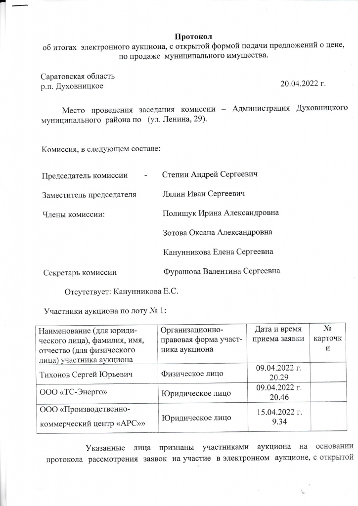 Организатор торгов: Администрация Духовницкого муниципального района Саратовской области;