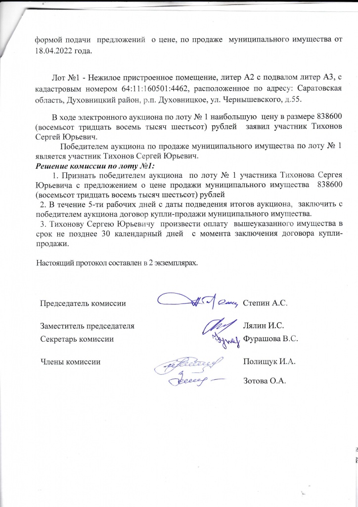 Протокол об итогах электронного аукциона, с открытой формой подачи предложений о цене, по продаже муниципального имущества