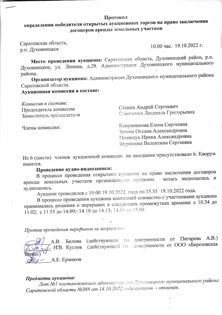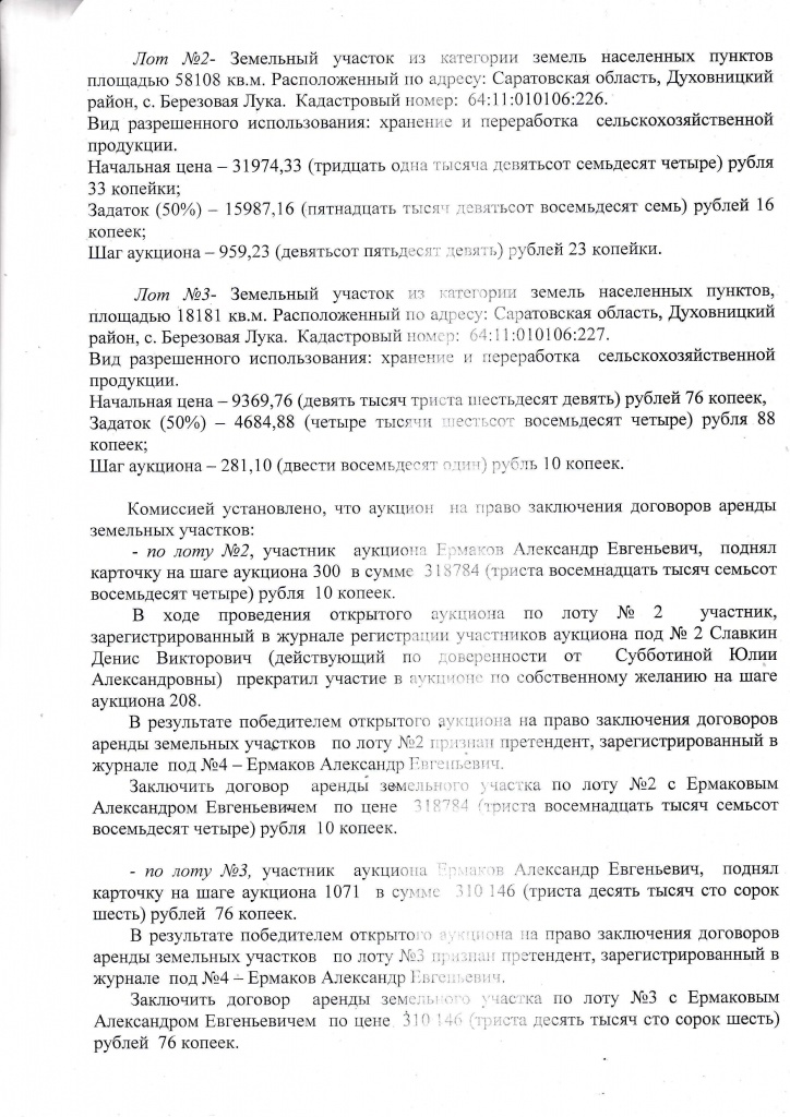 Протокол определения победителя открытых аукционных торгов на право заключения договоров аренды земельных участков от 19.10.2022