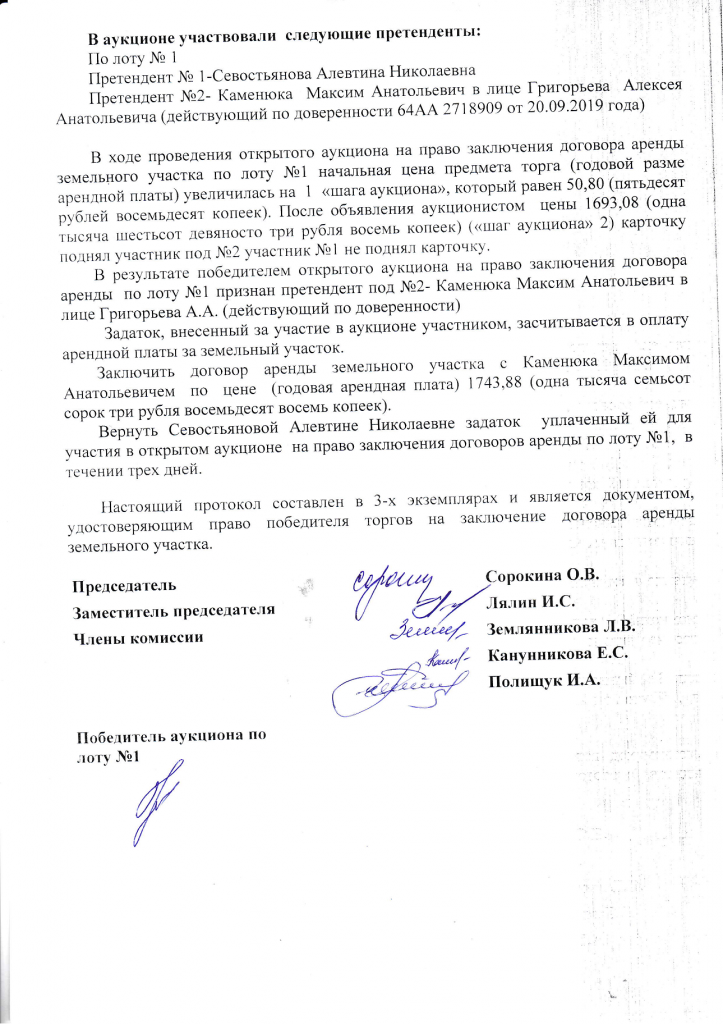 Протокол определения победителя от 11.10.2019